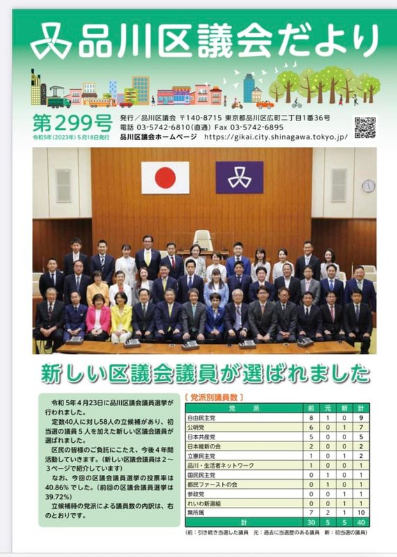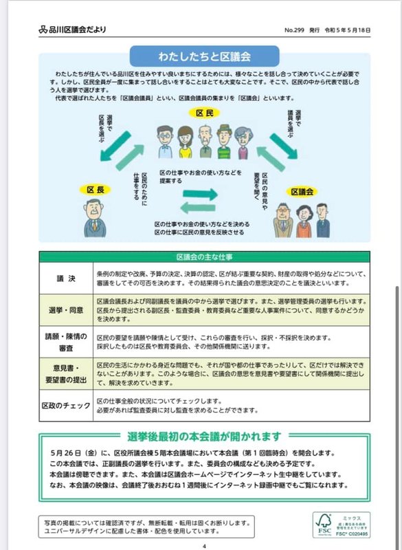 5月26日には、品川区議会第一回臨時会が予定され、議長、副議長等が決定されます。