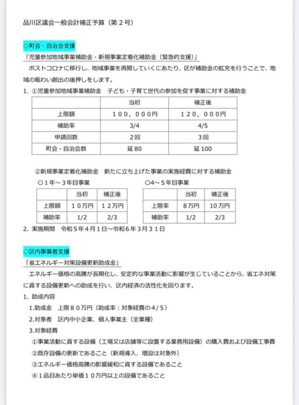 また、品川区一般会計補正予算(第2号)が上程され、各委員会で審査し、29日の本会議で、全会一致で可決成立しました。