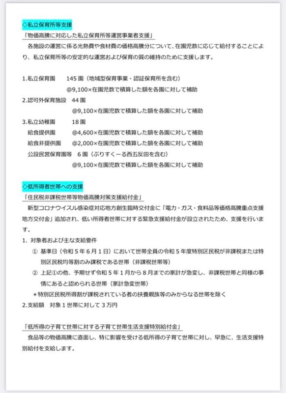 この補正予算には、区議会公明党が、3月28日に森澤区長に緊急要望した、「エネルギー価格・物価の高騰に対する緊急要望」の以下の3点が反映されています。