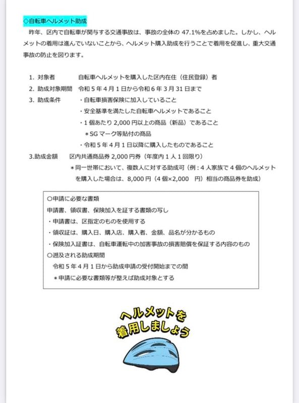 自転車ヘルメット購入助成は、多くのお声をいただいていました。
