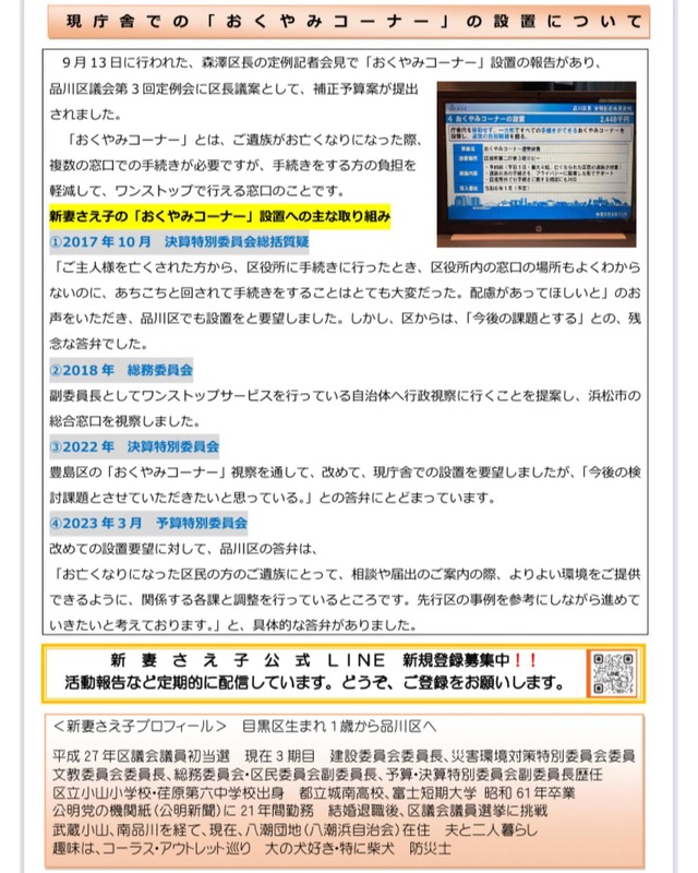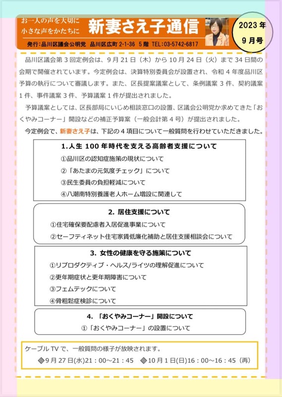 ホーム>政党・政治家>新妻 さえ子 (ニイヅマ サエコ)>【活動報告】今週末は、地域の集いに参加させていただき、「新妻さえ子通信」を元に報告しています。