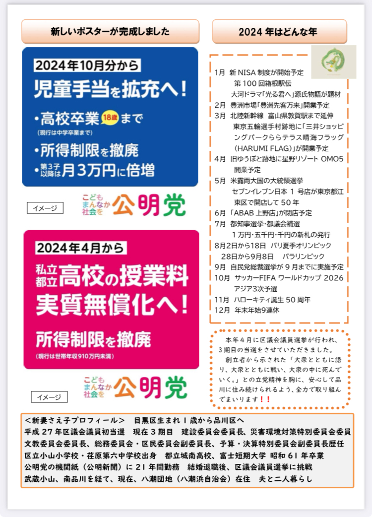 日頃より、公明党へのご支援や新妻さえ子をお支えいただいている皆さまへ、通信を元に報告させていただきました🎤