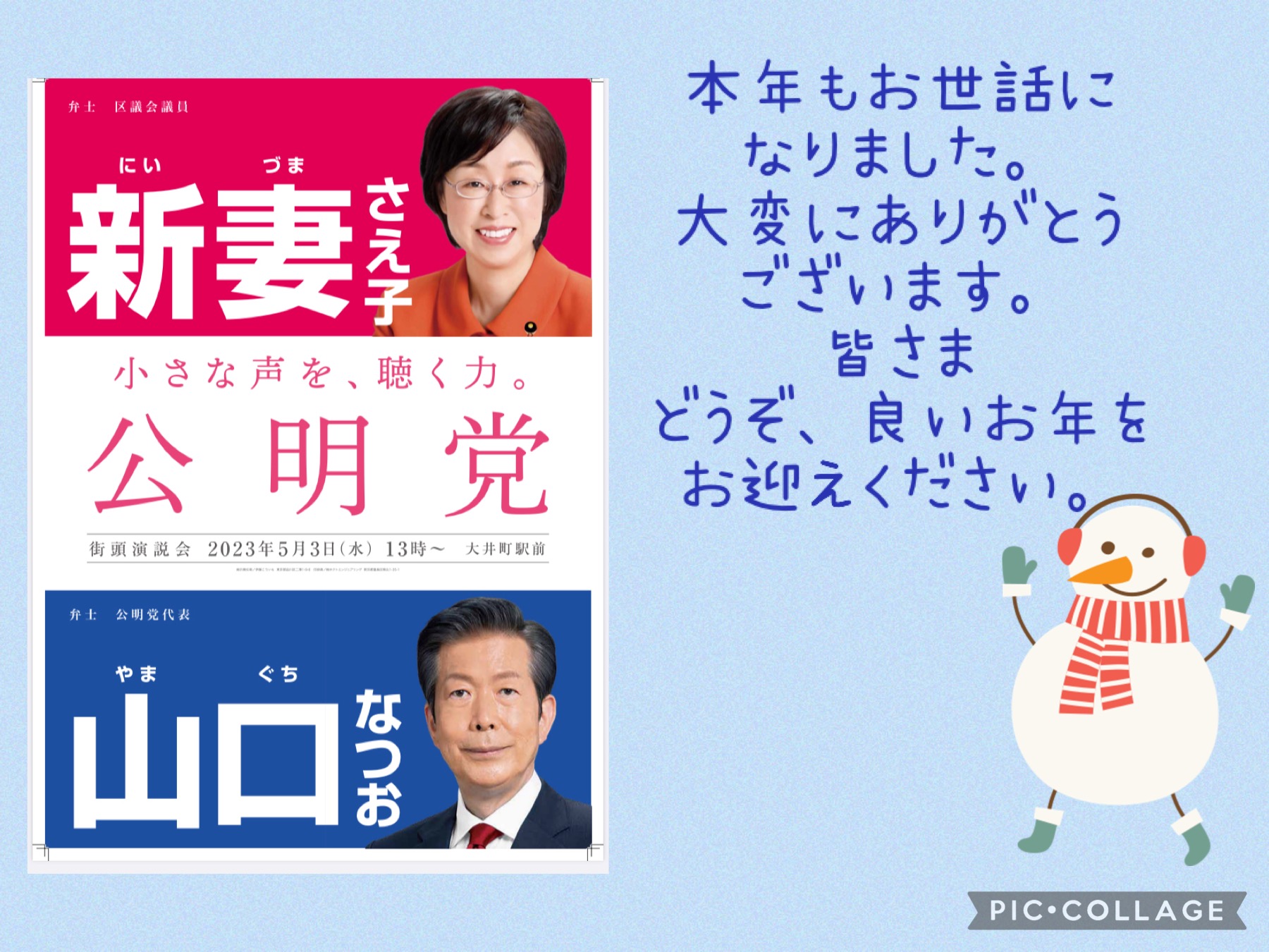 ホーム>政党・政治家>新妻 さえ子 (ニイヅマ サエコ)>【大晦日】
