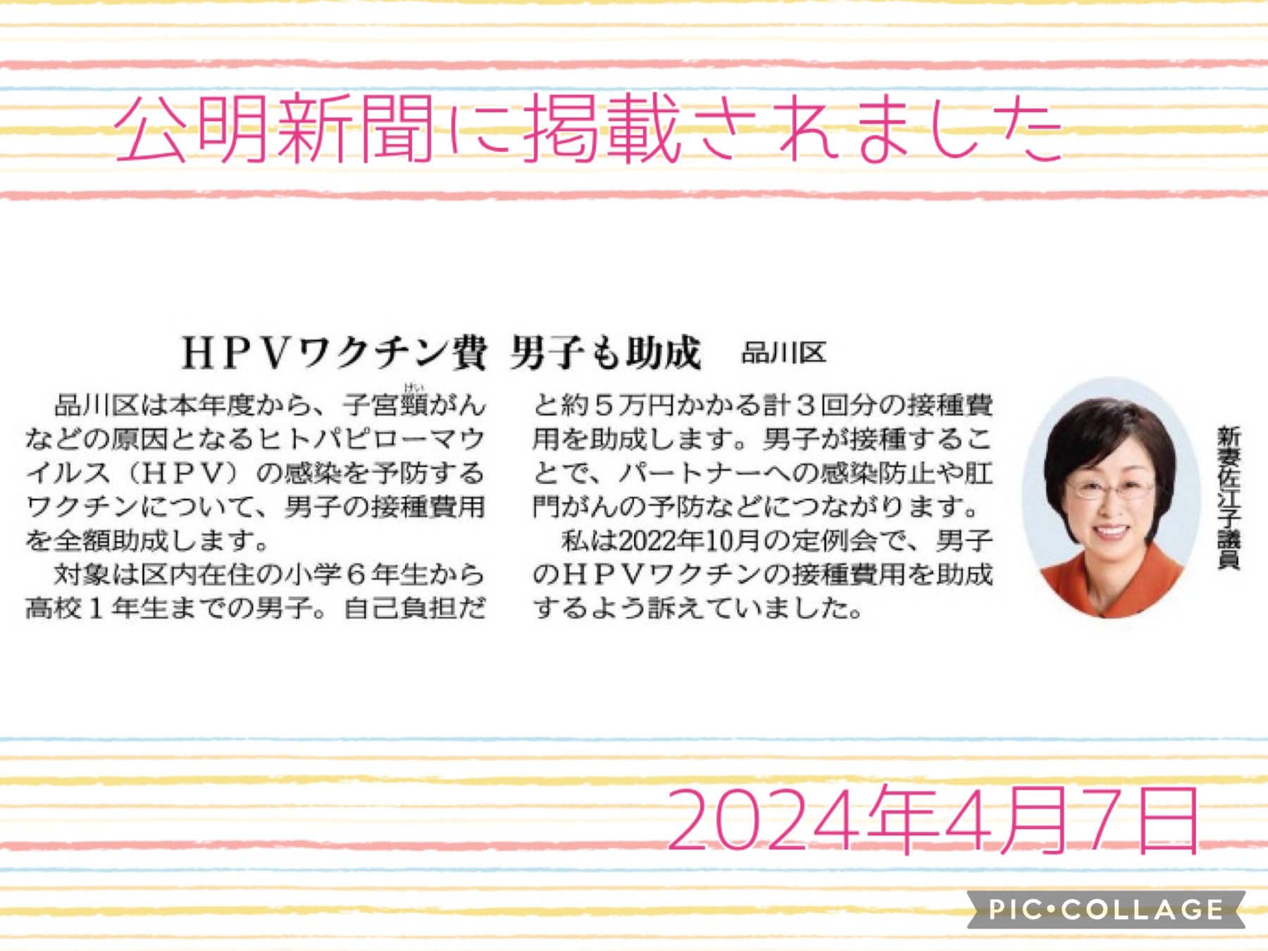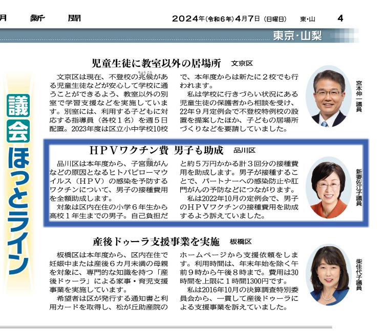 本日(4/7)付け、#公明新聞 に、男性のHPVワクチン接種助成について、掲載していただきました。