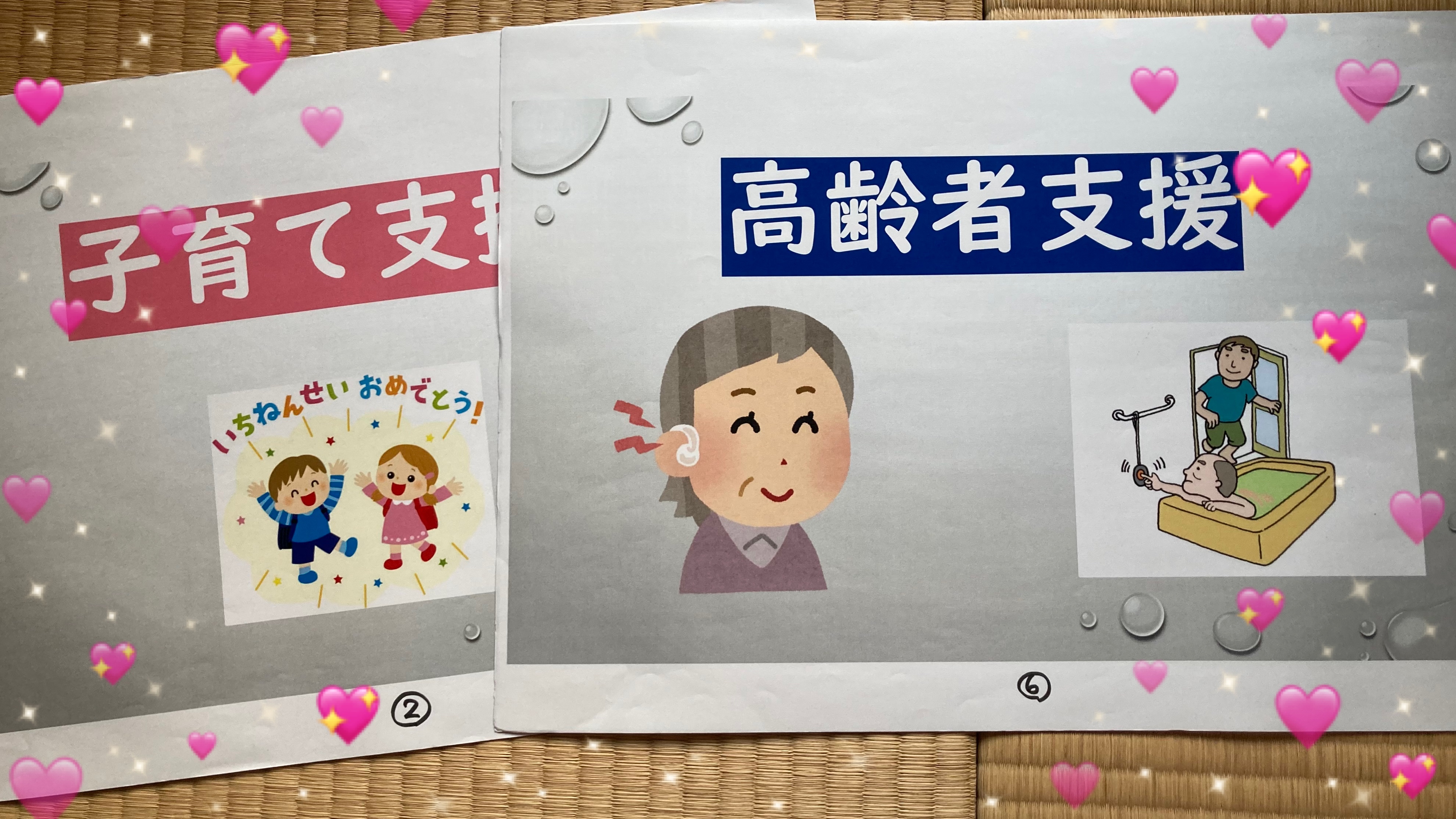 今回は、新妻さえ子通信ではなく、『区議会公明党の取り組み紙芝居』を作成しました。