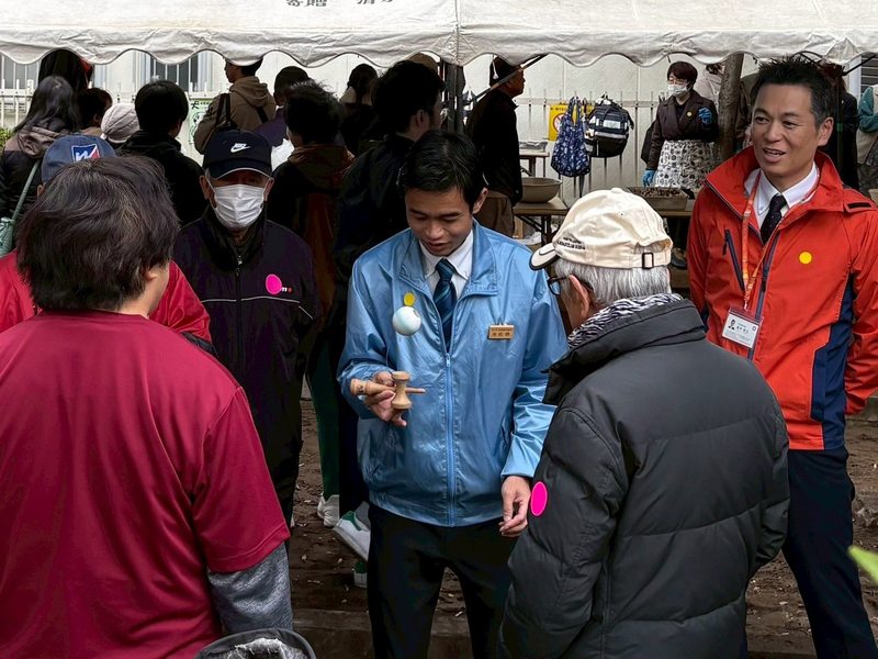 私もけん玉を披露しましたが、さすがに名人のスキルには足元にも及びません、、、