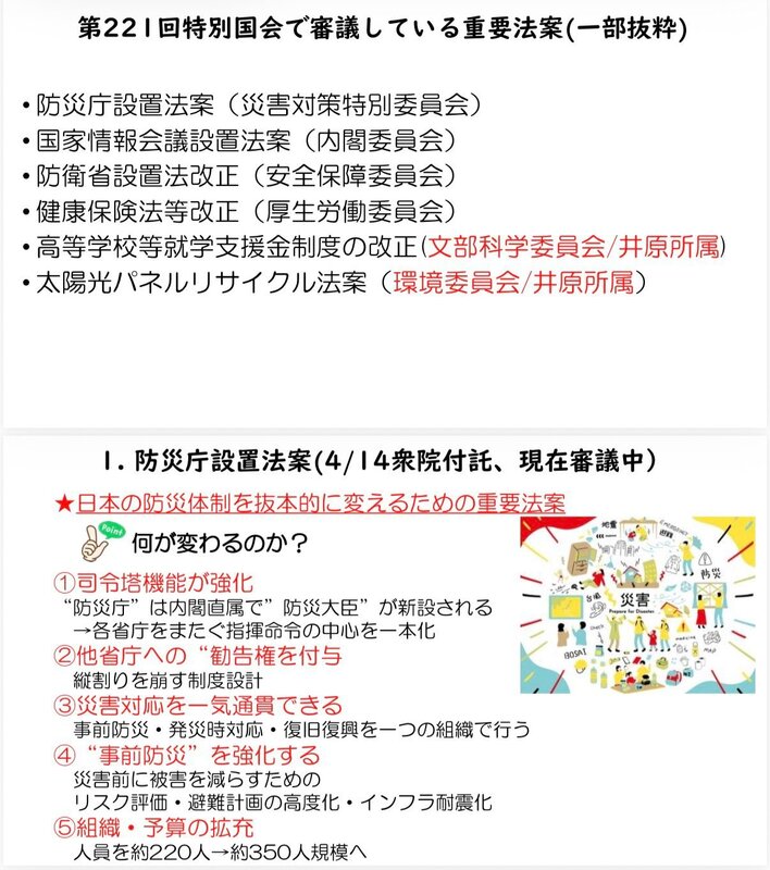 自治会総会2ヶ所でしたが、共に防災のお話が自治会長からありましたので、防災庁設置法案について触れました。大事なのは身近な”共助”であり、事前に地域ごとの防災計画を作る必要があるので、国と自治体が連携を密にしなければなりません