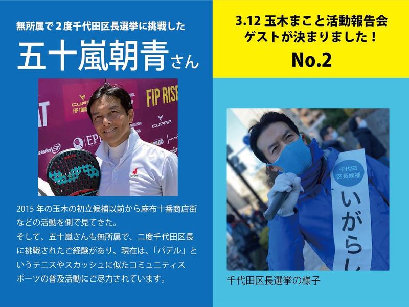 ホーム>政党・政治家>玉木 まこと (タマキ マコト)>港区議会議員玉木まこと活動報告会ゲスト決定!No.2