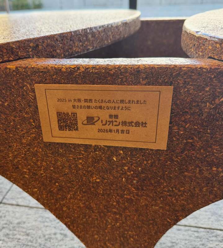 #リオン株式会社 様より、国内の未利用間伐材を活用し作成され、大阪・関西万博にて使用されたベンチをご寄付いただきました。
