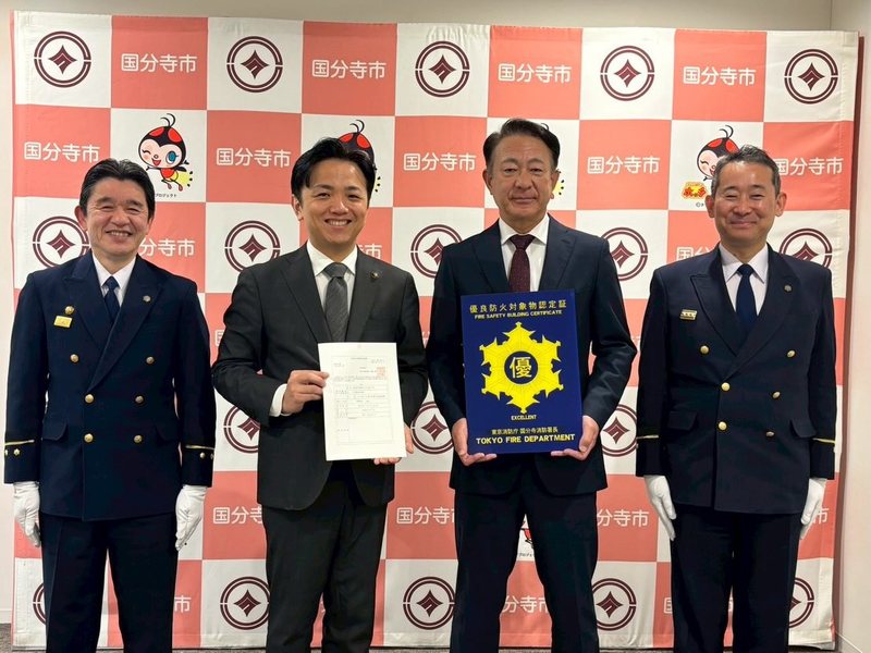国分寺消防署より、優良防火対象物認定証(優マーク)を頂戴しました。