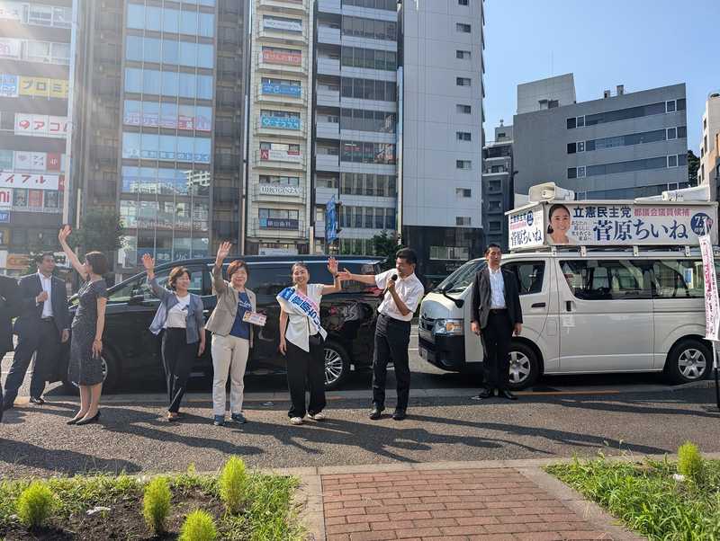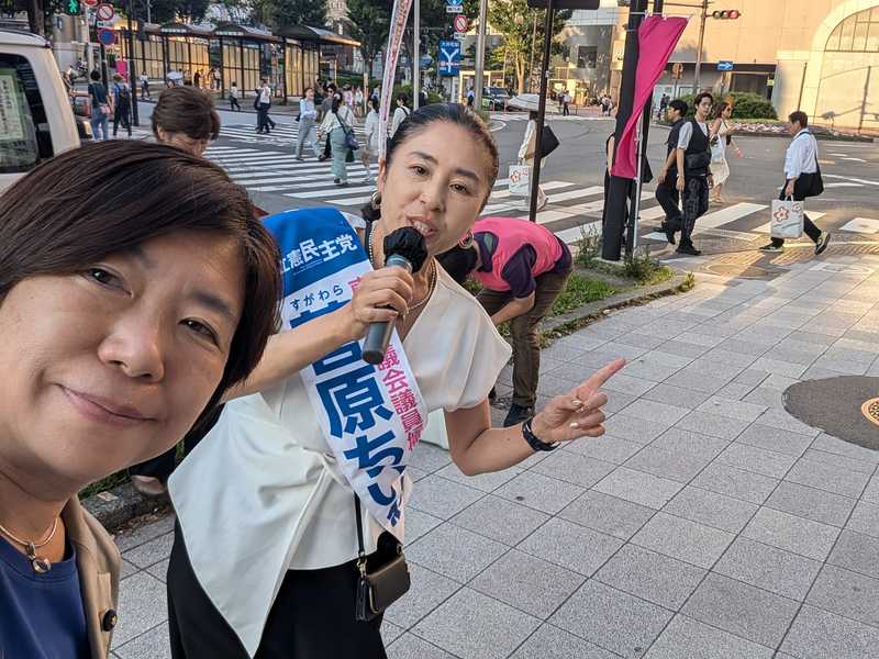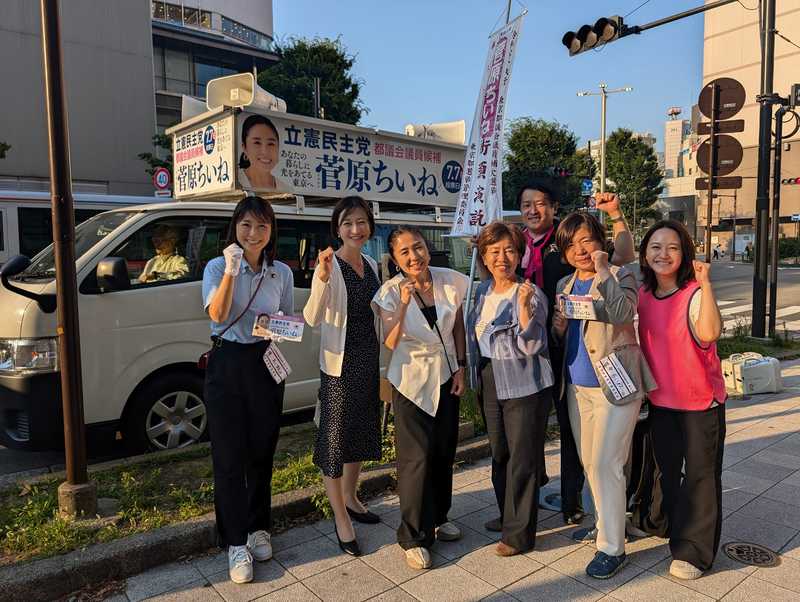品川区での都議補選も7日が投票日。 菅原ちいねさんをよろしくお願いします! 今日は泉代表も応援に💨