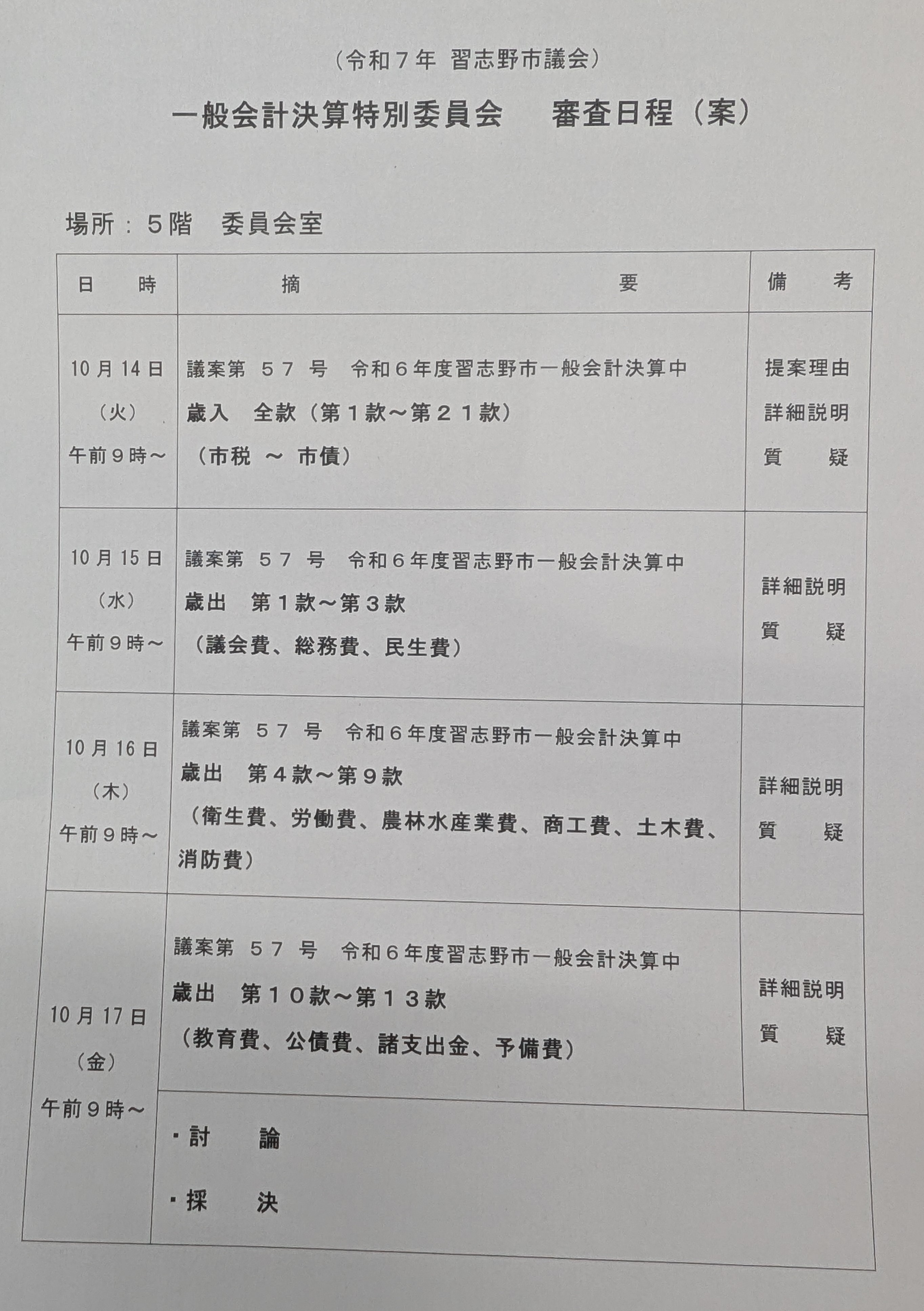 昨日から、令和6年度の一般会計決算にかかる特別委員会が始まりました。