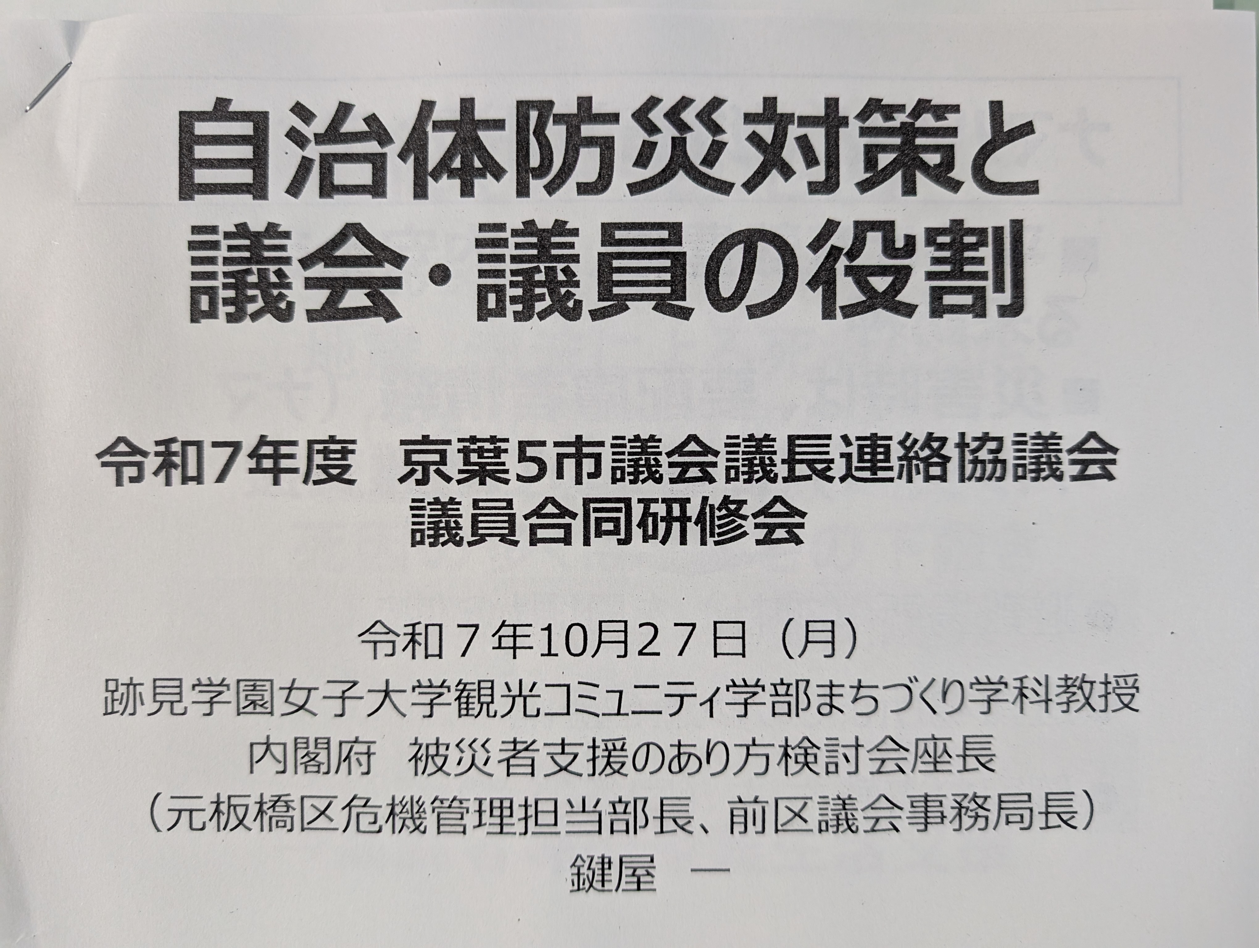 ホーム>政党・政治家>いちずみ 雄幸 (イチズミ ユウコウ)>令和7年度 京葉5市議員研修会 自治体防災対策と議会議員の役割
