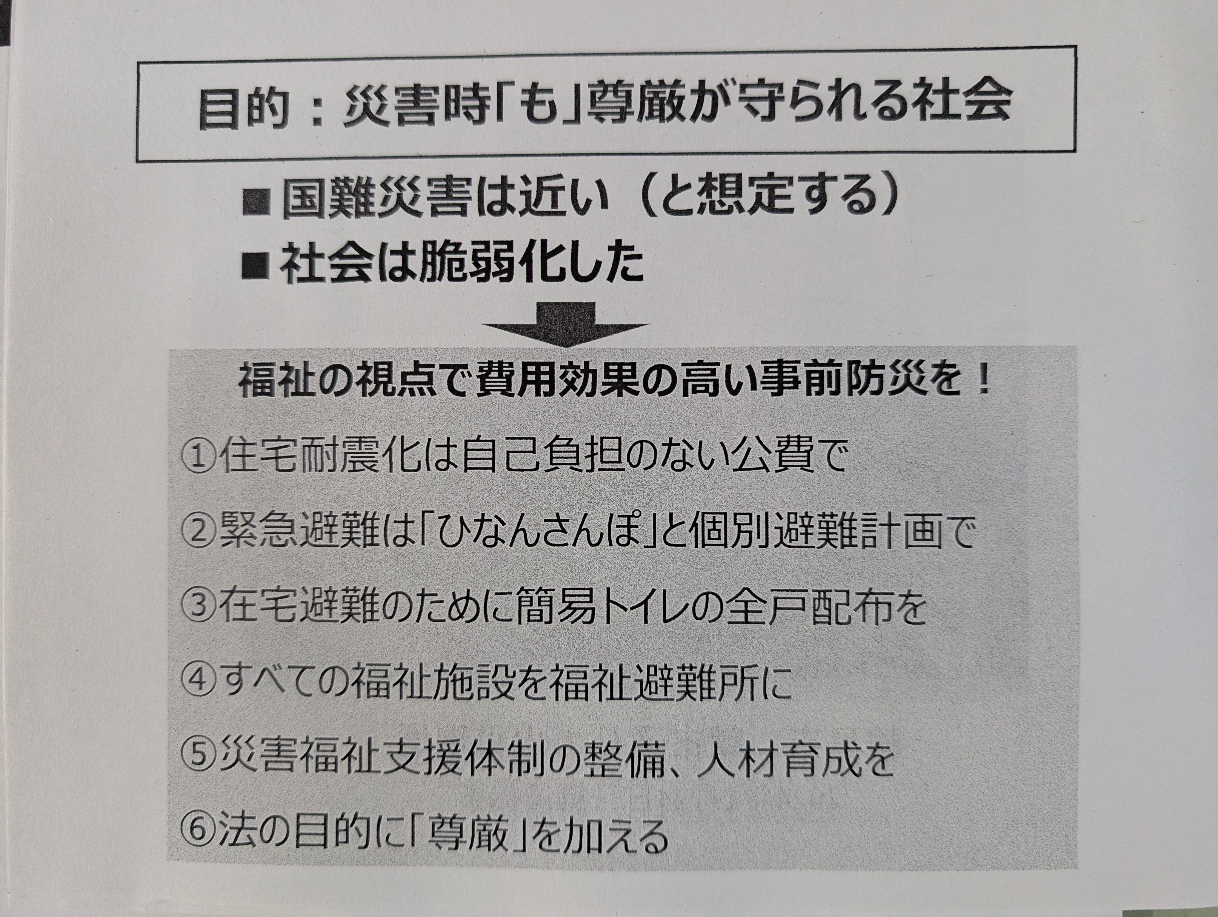 印象的だったのは、「自治体が目指す防災対策とは、災害時“も”尊厳が守られる社会をつくること」という言葉。