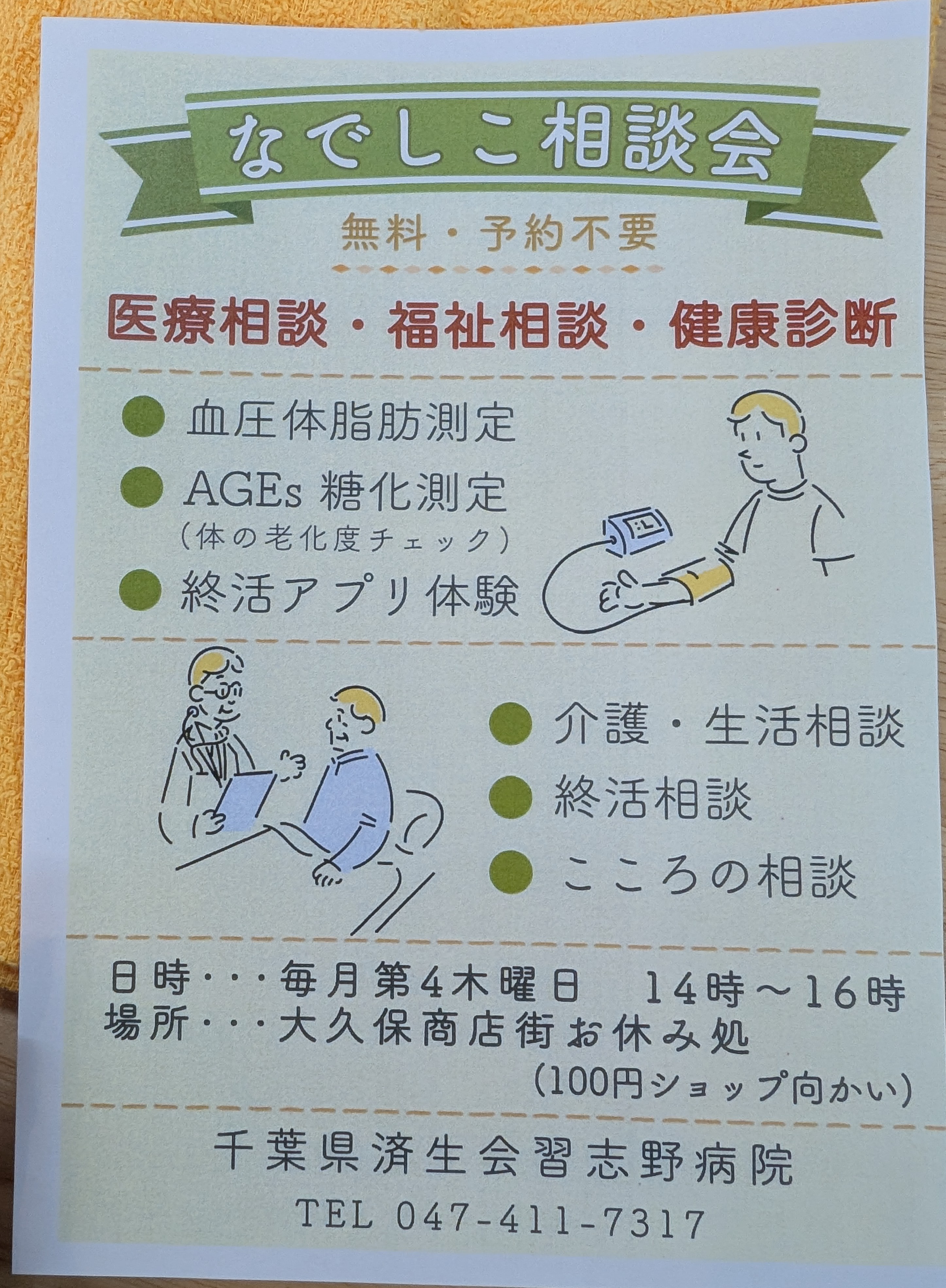 ホーム>政党・政治家>いちずみ 雄幸 (イチズミ ユウコウ)>習志野市 なでしこ相談会を見学 〜医療・介護・終活まで気軽に相談できる場〜
