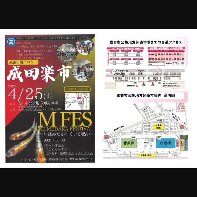 🔷成田楽市 成田市公設地方卸売市場イベント めだかフェス同時開催 https://share.google/iE6GSyWcb2ZnACd9I 今年は「めだかすくい」が熱い