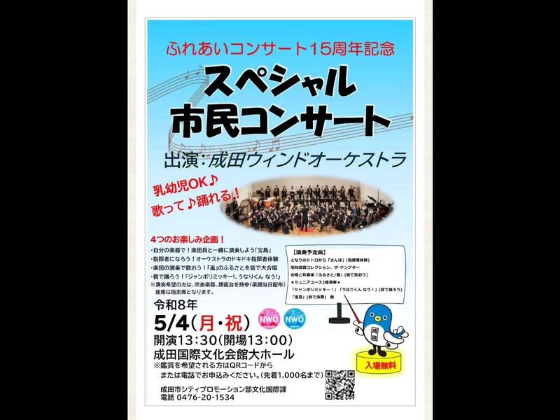 ホーム>政党・政治家>鳥海 なおき (トリウミ ナオキ)>🔷成田ウィンドオーケストラ5月4日成田市主催「スペシャル市民コンサート」出演にhttps://...