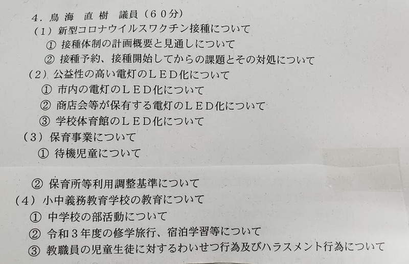 ホーム>政党・政治家>鳥海 なおき (トリウミ ナオキ)>【鳥海一般質問:6月8日】【修学旅行延期による】【キャンセル料の取り扱い】【成田市のワクチン接...