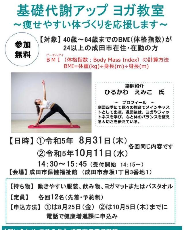 ホーム>政党・政治家>鳥海 なおき (トリウミ ナオキ)>〇基礎代謝アップヨガ教室体力に自信のない人でも取り組める簡単なヨガを通じて基礎代謝をあげる方法...
