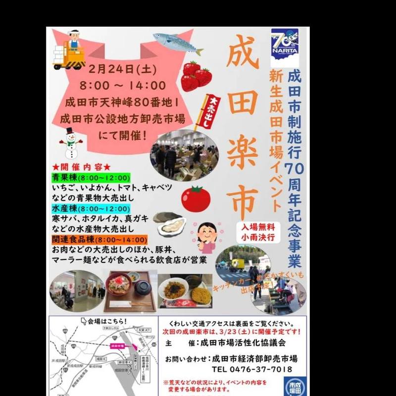 ○成田楽市 毎月第4土曜日は 新生成田市場へ 旬の新鮮な食材など 豊富に揃ってます