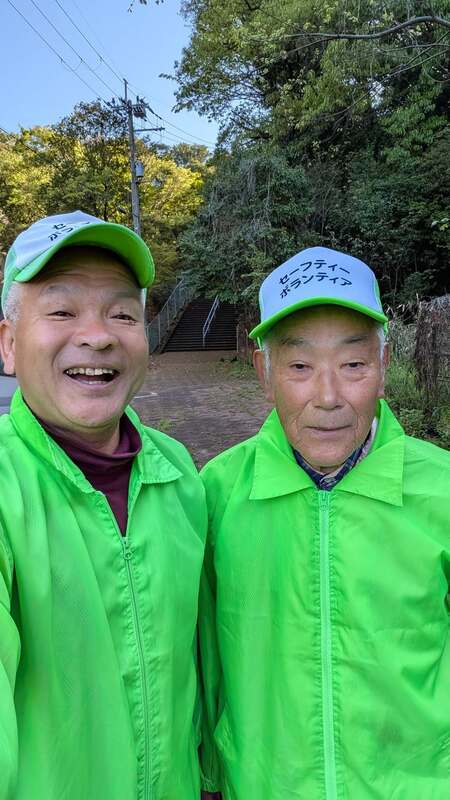 なんと御年90歳。私のラジオ体操仲間で、まだまだかくしゃくとされています。「近所の子どもたちの安全を守りたい」。そんな思いでの参加です。