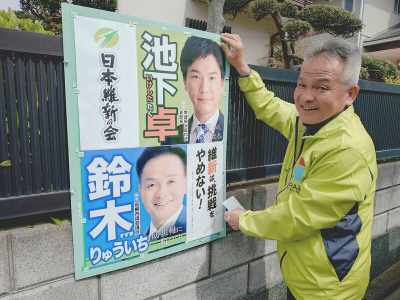 #大阪維新の会 #毎月22日 #統一行動デー #ポスターお願い行脚 #衆議院議員池下卓さん #防災軸に町づくり #鈴木りゅういち