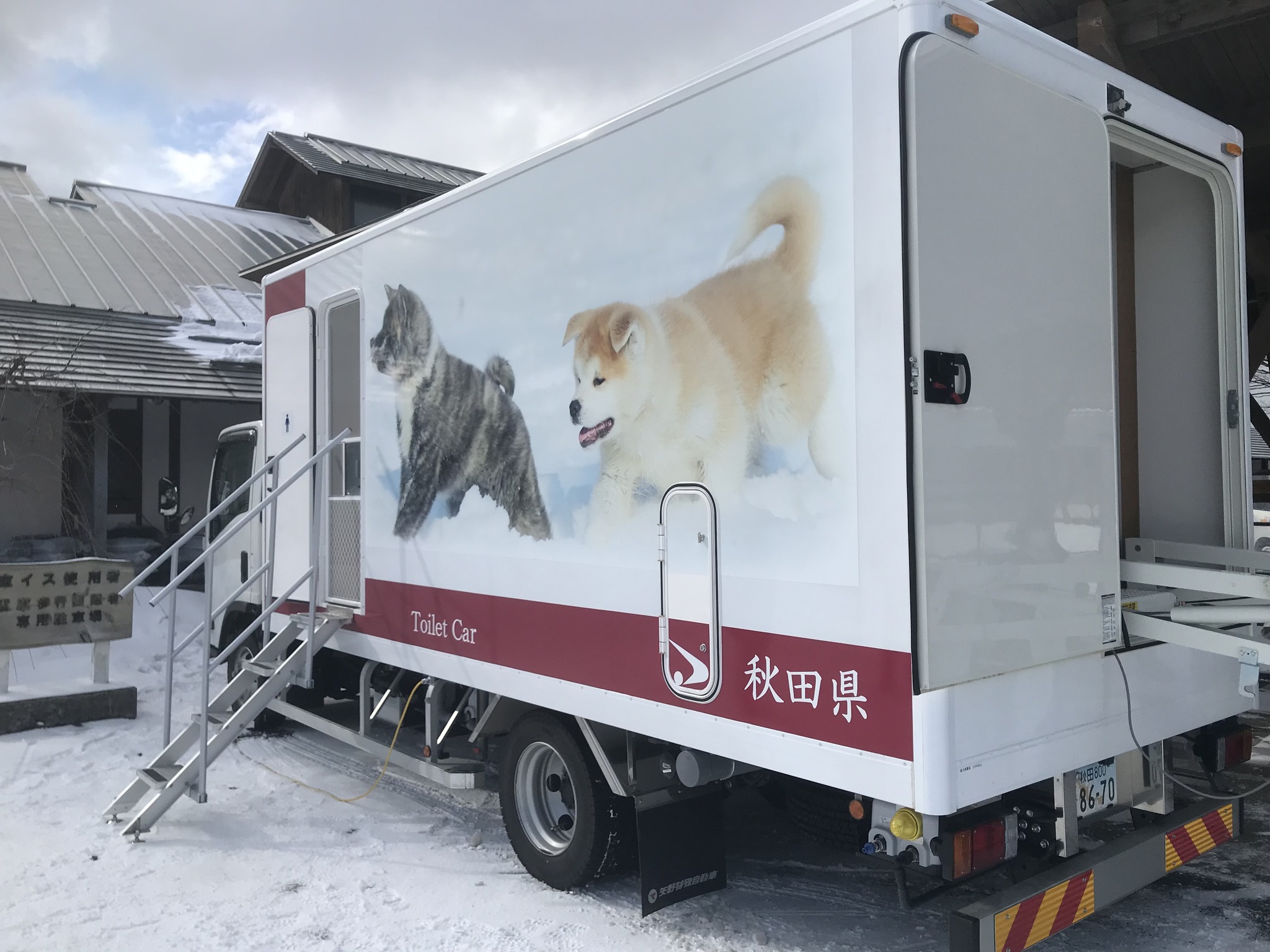 災害時に寄付車の貸し出しを行っている「日本カーシェアリング協会」には、過疎地など公共交通空白地の交通弱者を救う活動として「コミュニティカーシェアリング」の説明をいただきました。また昨年導入された秋田県の災害救護用大型トイレカーを見学しました。