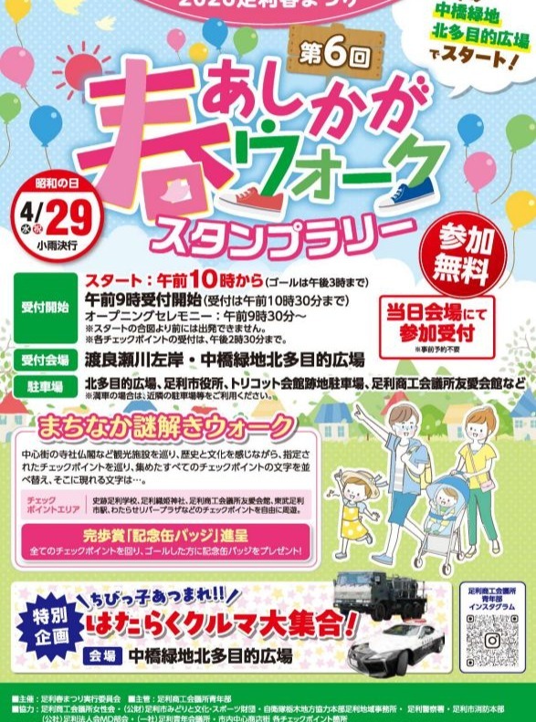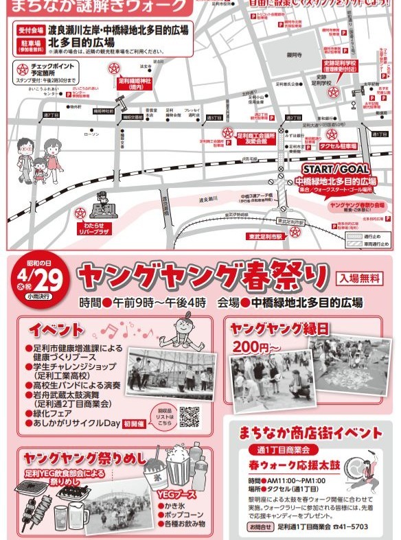 明日は足利の春を感じるイベント「あしかが春ウォーク・ヤングヤング春まつり」です。