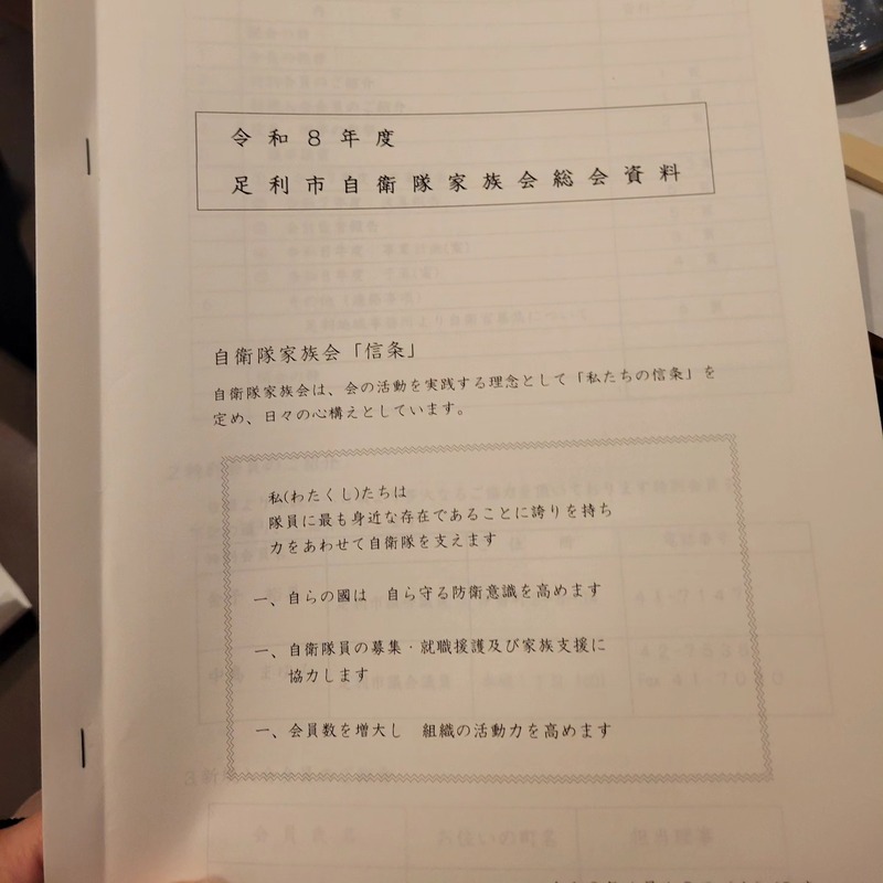 4月18日(土) 令和8年度 足利市自衛隊家族会 総会