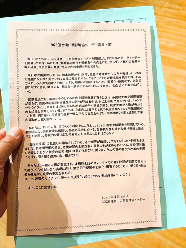 2026 連合山口 西部地域協議会 メーデー式典。