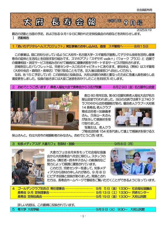 午後の大府長寿会総会では、人生経験豊かな先輩方が地域を支え続けてこられた重みと、今なお元気に活動されている姿に、大きな力をいただきました。