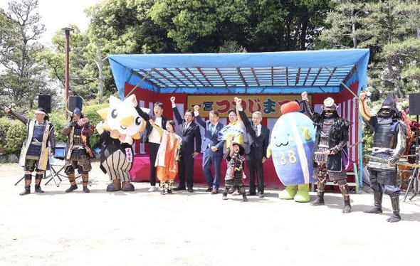 オカリナや太鼓などの演奏も行われる中、浅野長政、織田信長、山内一豊ら武将隊が公園内で来場者との記念撮影に応じていました。
