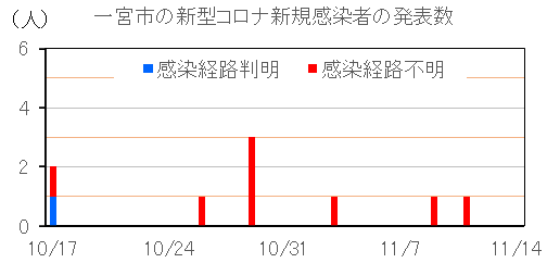 11月14日(日)、一宮市における新型コロナ新規感染者としての発表はありませんでした。(前週同曜日比:±0人)