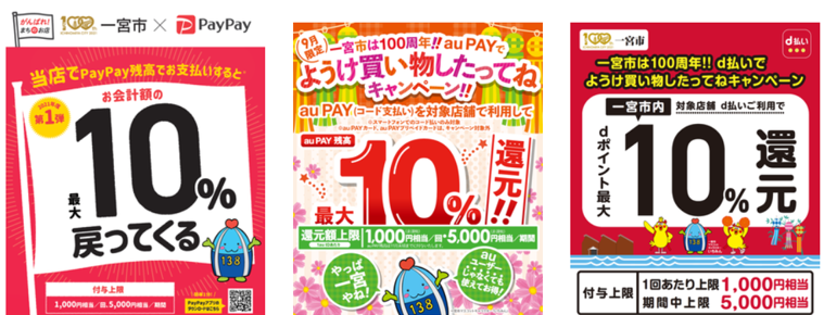 一宮市では、12月1日(水)~31日(金)に、新型コロナウイルス感染症拡大防止、消費喚起、キャッシュレス決済推進を目的に、一宮市が対象とする3事業者のスマートフォン決済アプリ利用時において、ポイントを還元するキャンペーンが開催されます。題して、「ようけ買い物したってねキャンペーン冬の陣」です。ポイント還元率は、10%です。