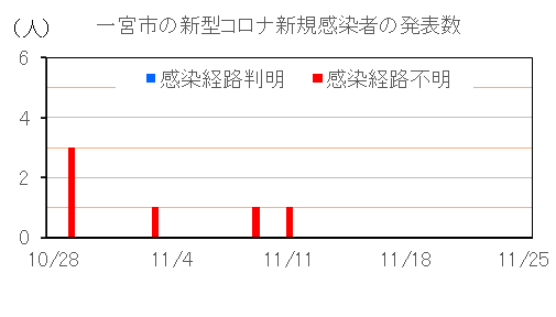 11月25日(木)、一宮市における新型コロナ新規感染者としての発表はありませんでした。(前週同曜日比:±0人)発表がない日が、14日連続となり、最長を更新中です。