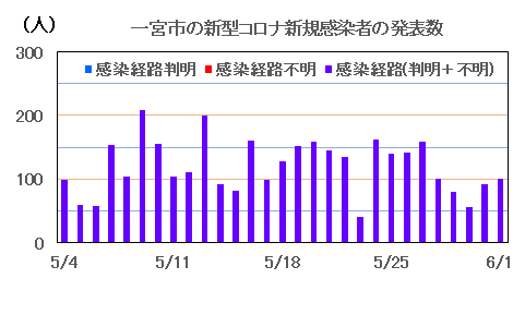 一宮市は、6月1日(水)、新型コロナ新規感染者として100人(前週同曜日比:-40人)を発表しました。