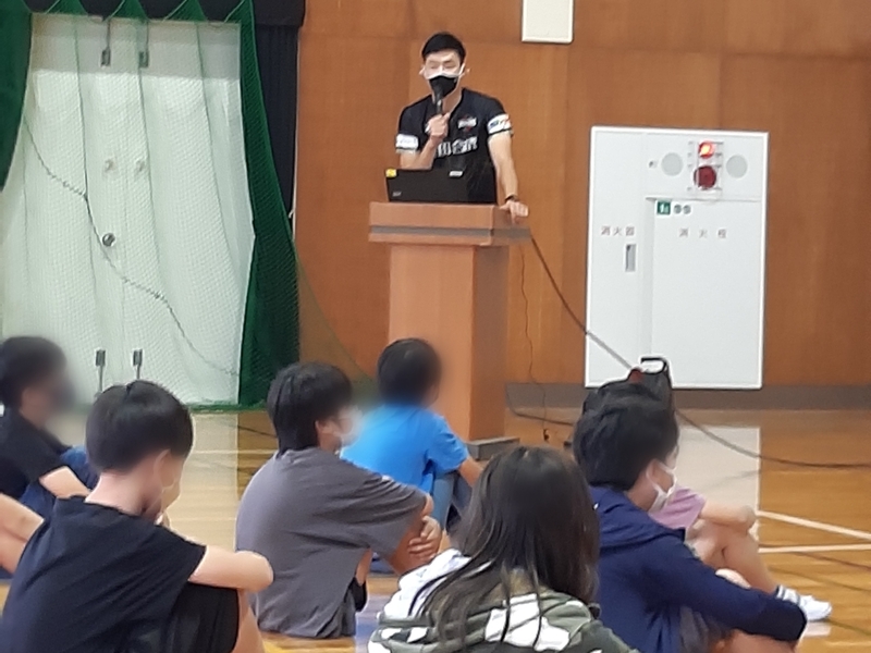 ホーム>政党・政治家>中村 かずひと (ナカムラ カズヒト)>一宮市 ウルフドッグス名古屋 近裕崇選手 千秋南小にて 「夢をつなぐプロジェクト」講義