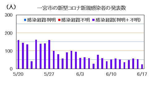 一宮市は、6月17日(金)、新型コロナ新規感染者として25人(前週同曜日比:-26人)を発表しました。