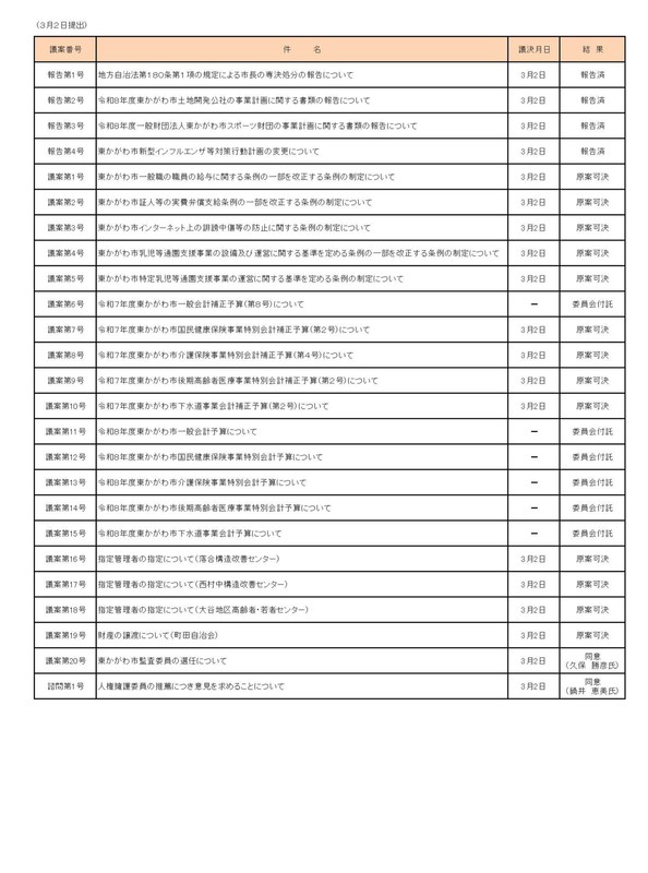昨日の議会の決定事項珍しく委員会付託以外のすべての議案が全会一致でした