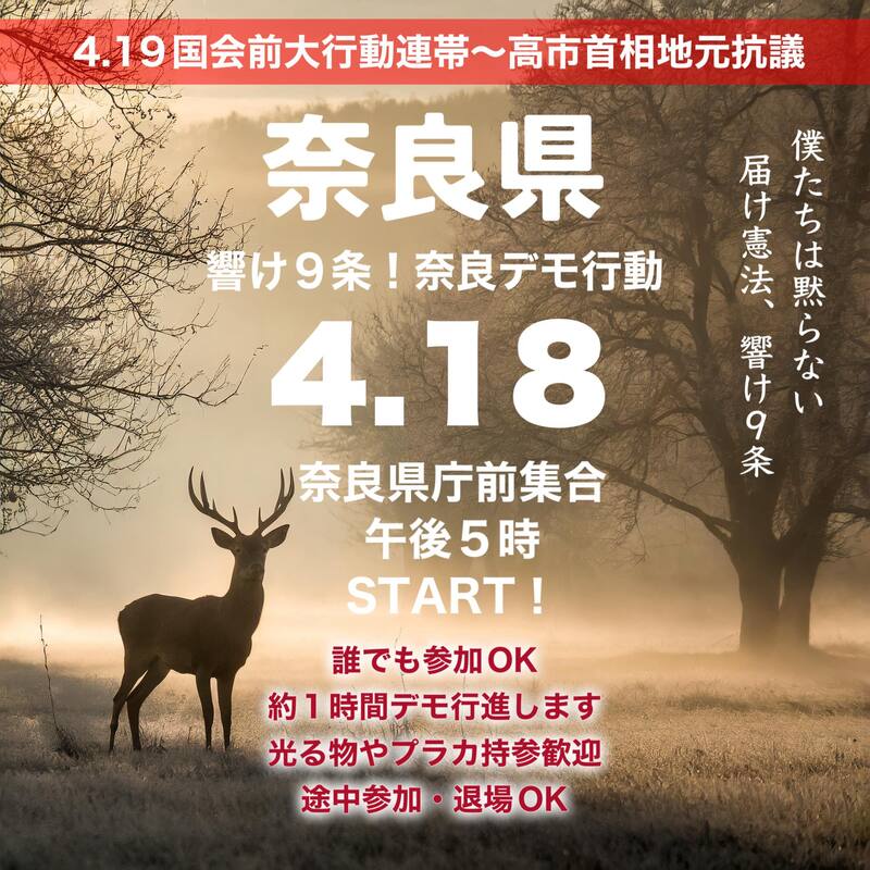 ホーム>政党・政治家>徳野 衆 (トクノ シュウ)>[奈良@国会前行動連帯]#0419国会前大行動連帯全国アクションに連帯し、#奈良県は1日前にな...