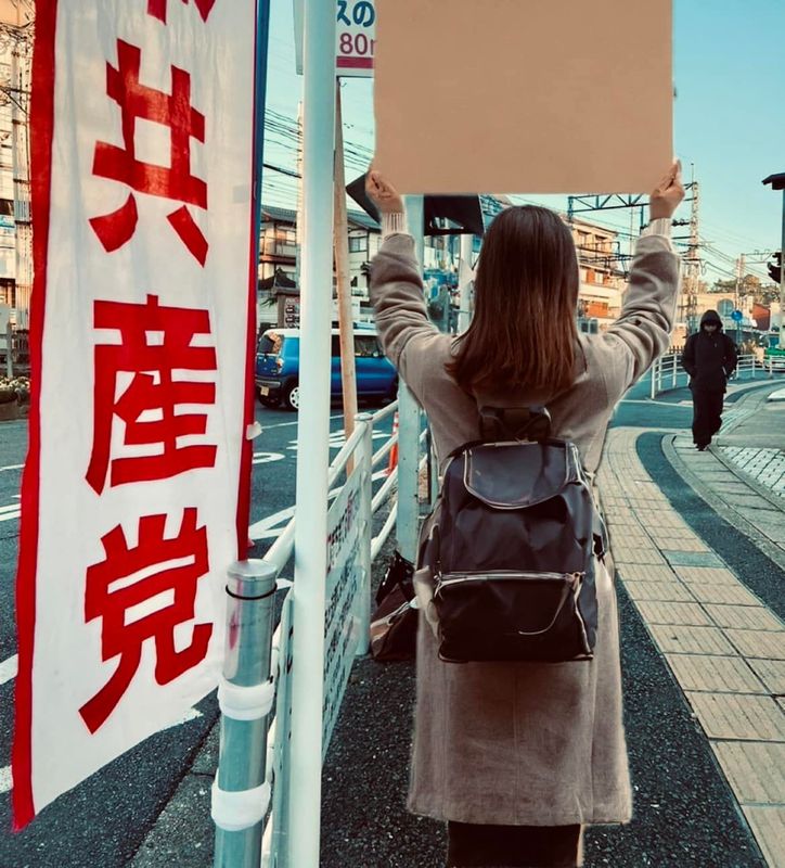 今朝の駅前スタンディング中、若い女性が来て「私もいいですか?」とプラスターを高く掲げてくださりました🙏