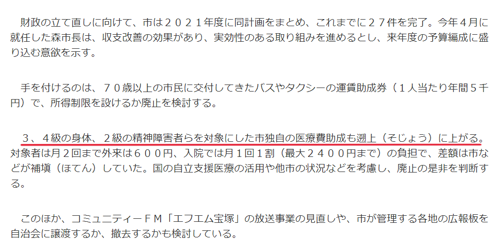 >>2級の精神障害者らを対象にした市独自の医療費助成も遡上(そじょう)に上がる。