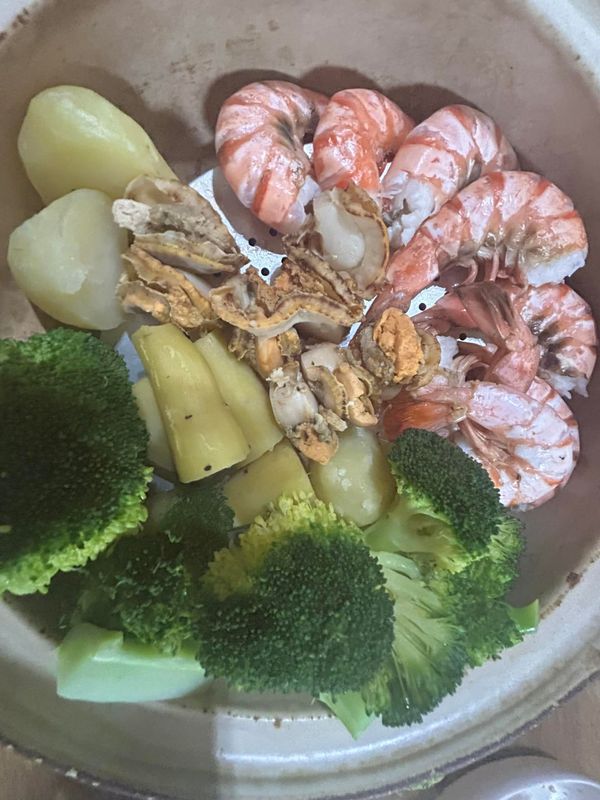 お疲れさんと好物の蒸し料理。