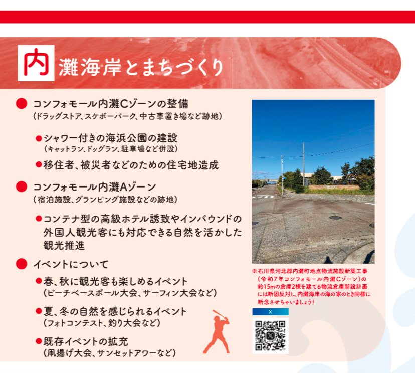 ホーム>政党・政治家>むらしま 誠 (ムラシマ マコト)>内灘海岸とまちづくり (村島誠後援会リーフ)