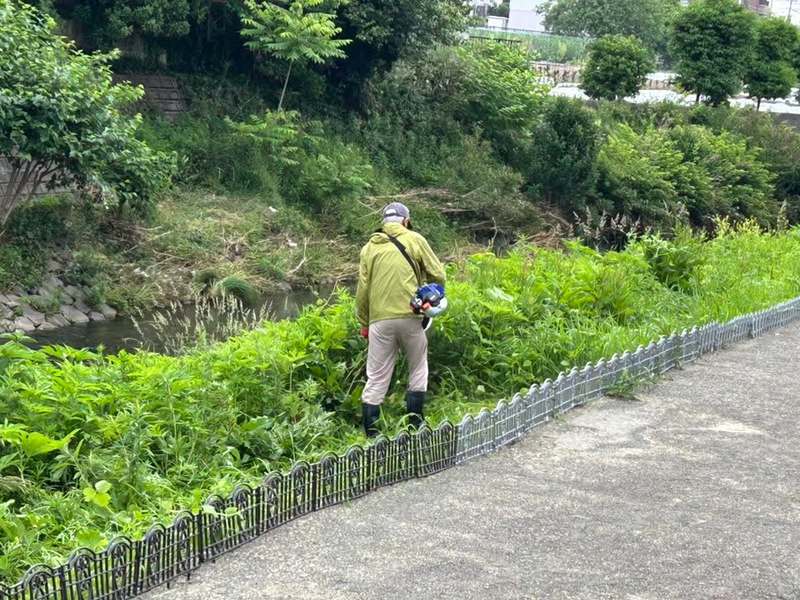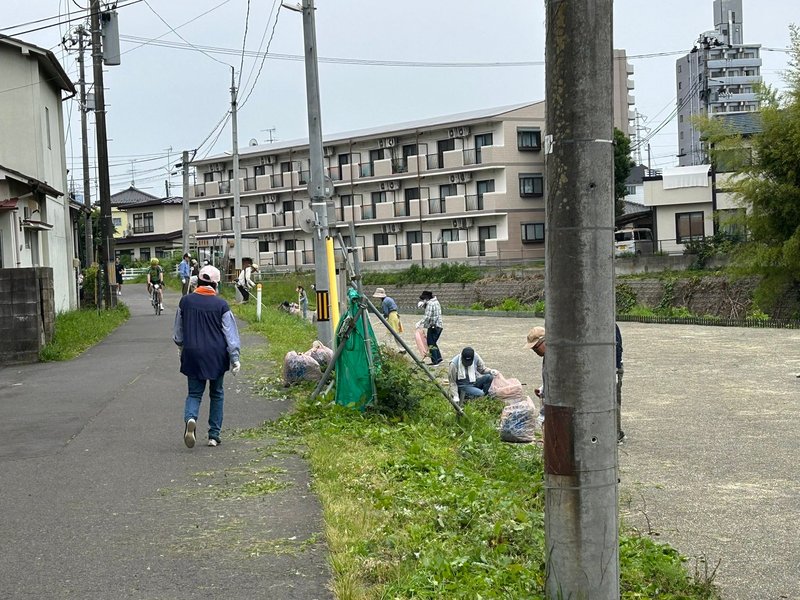 ◎6.8 一汗かいてスタート! 今朝は、苦竹町内会、梅田川沿いの一斉草刈りで一日の幕開けです♪