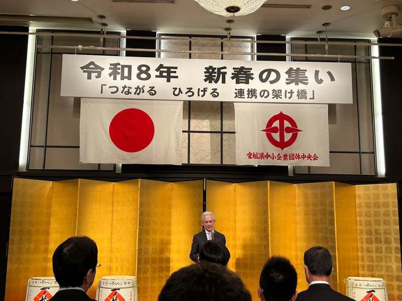 今日は、県議会自民会派総会、二つの勉強会「#仙台赤十字病院・#宮城県立がんセンター総合新病院の基本計画」と「#津波災害警戒区域の指定」について。午後は、経済商工観光委員会副委員長として、#宮城県中小企業団体中央会(佐藤勘三郎会長)による「#令和8年新春の集い」に参列し、ご挨拶の機会を頂戴した。私からは、中小企業団体の方々に新年の幕開け「#前向きにチェンジ!」と訴えさせていただいた。
