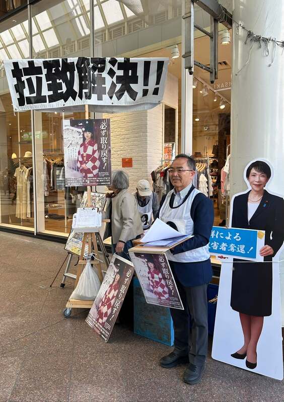 ◎4.26 高市総理と共に。 今日は、仙台市内において、月例の「#北朝鮮に拉致された日本人を救出するための署名活動」。#拉致問題対策本部長 の #高市早苗総理大臣 の立て看板をバックに活動です。わざわざ足を止めて署名いただいた方々に感謝を申し上げます。