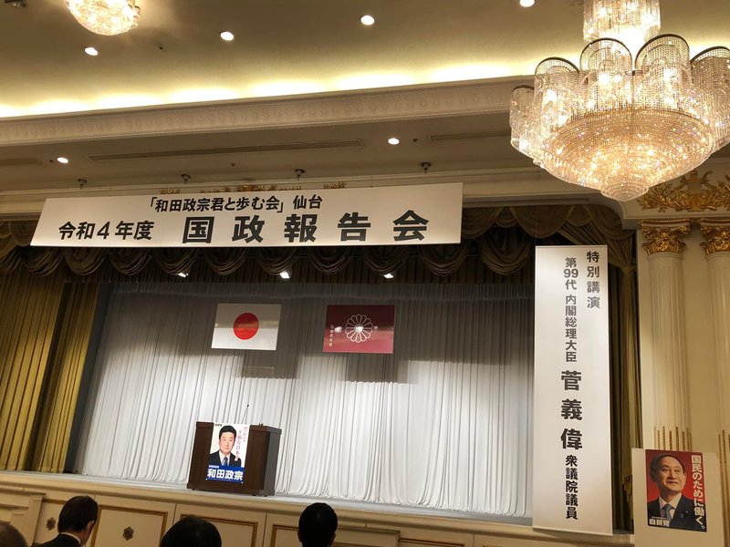 後段は、和田政宗議員が師と仰ぐ、第99代内閣総理大臣の菅義偉議員による特別講演により花が添えられました。