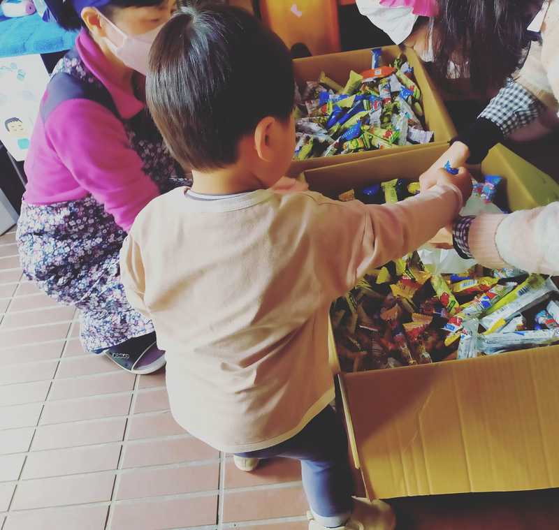 写真は「かえる公園こども食堂」で前にやったうまい棒つかみ取りです☆