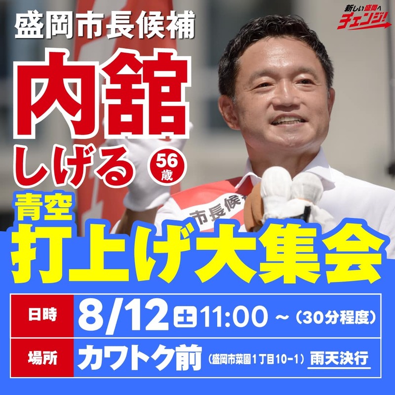 #盛岡市長選挙 #盛岡市長候補 #内舘しげる